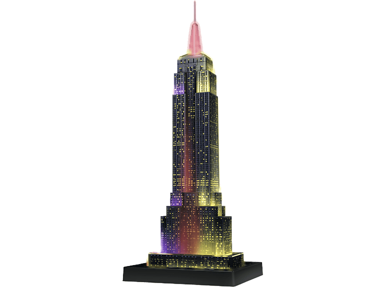 The completed puzzle will glow with a warm red, yellow, green, blue or pink light, automatically changing to make this an effective and dramatic addition to any room. 3d dėlionė ravensburger empire state building with lights 125661, 216 dalių. This night edition empire state building puzzle uses led technology to create 5 different coloured lighting effects. Empire state building 3d 216 puzzle pieces easyclick technology. Aus der nächtlichen skyline nicht wegzudenken ist das empire state building, das je nach anlass unterschiedlich farbig beleuchtet wird.